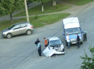 Вот посмотрите, что стало с “десяткой”, 7 сентября днем неудачно выехавшей на дорогу со стороны 25-го комплекса. Вы такое часто видели? А года два назад летним вечером на закате точно на этом месте произошло столкновение действительно уникальное. “Я, когда пересекал проспект в сторону 25-го комплекса, не забыл посмотреть нет ли помехи, и помехи не было. Я, правда, после работы заехал на дачу, поработал там, после заехал сюда к родственнику, и вот ехал домой. Устал”, - оправдывался после аварии водитель “Оки”. А его “Ока” между прочим “подлетела” под “ПАЗик” с пассажирами, едущий по Татарстану к остановке. Да так подлетела, что ее развернуло, она пересекла дорогу, затем газон, разделяющий дорогу и пешеходный тротуар, затем сам тротуар и... почти весь газон, разделяющий тротуар и дом 24\06. Прохожие в диком изумлении останвливались, видя жутко помятую “окушку” возле стены дома. А водитель, чудом сумевший остановить машину, без конца рассказывал, что да как произошло. Опытные водители говорили ему на будущее, что на закате, особенно если смотришь на дорогу в сторону низкого Солнца, действительно можно не увидеть идущую наперерез машину. Особенно если цвет у нее светлый. В таких случаях на дорогу нужно смотреть дважды, второй раз когда начинаешь движение наперерез. |