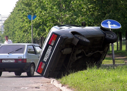сам то он поехал прямо,а вот машина решила всё таки свернуть!!!!!!!!!