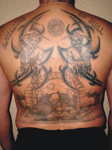 Игорь Понцырев приютил на плече Дракона, а со спины всех приглашает в ад. |