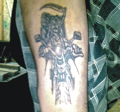 По предплечью Рамиса Гайнанова разезжают байкеры.
