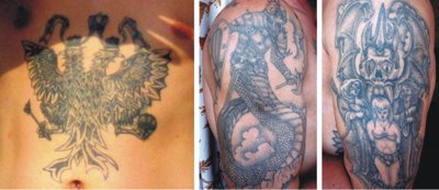 «Так как у меня татуировок нет, не мог поучаствовать лично, - пишет нам Айрат Валияхметов. - И поэтому отправляю фотографии друзей. На первом снимке татуировка друга Ильдара, которую он сделал в домашних условиях, так сказать, из патриотических чувств... А на второй и третьей фотографиях - тату Ильшата. Его татуировкам более 10 лет, поэтому подробности кем и где они наколоты давно забыты».