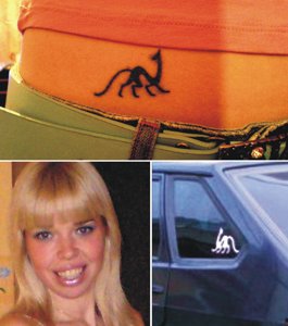 «История этой тату корыстная, - пишет Екатерина Марченко. - Мне очень трудно себя заставить ходить в спортзал, но я очень хочу иметь плоский животик. Я решила, если у меня будет тату на животике, то это будет стимул заниматься спортом. А потом я сделала такую же татушку на свою машину. Теперь все знают, чья это машина».