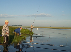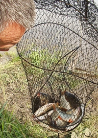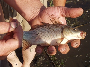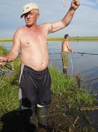 С 11 на 12 июля выбрались на пруд у деревни Семекеево в надежде половить карася. Но не клевал, зараза, ни на вечерней, ни на утренней зорьке. Ни на червя, ни на опарыша, ни на перловку. От червя пришлось отказаться, потому что стал доставать мелкий пескарь. На опарыша вытащили несколько мелких ельцов. А вот на перловку изредка стал поклевывать небольшой карп, 100-200 граммов. 15 таких экземпляров вполне хватило на несколько сковородок. Этим и утешились. О.БЕРЕГ