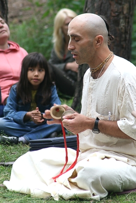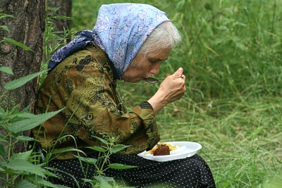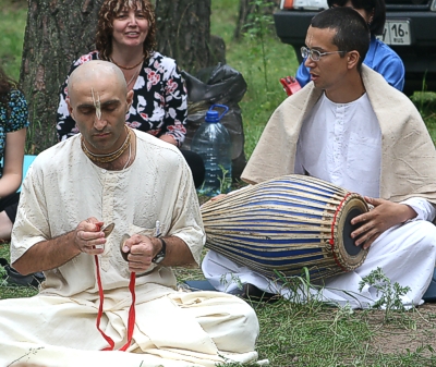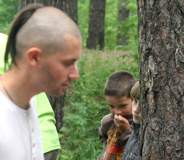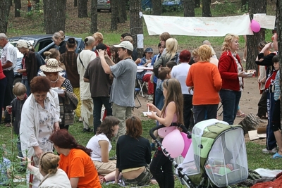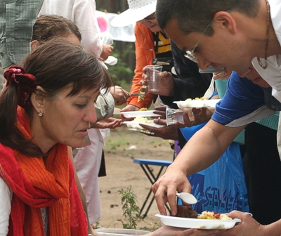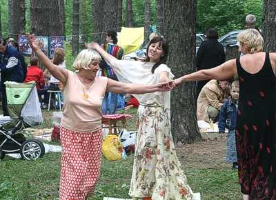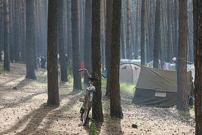 Привет из леса(Осторожно: трафик) Если бы на прошлой неделе неопытный грибник забрел на туристическую поляну в Боровецком лесу, его бы хватил кондратий - вместо грибов под каждым деревцем росли палатки. Много палаток. И пара сотен людей со всей России. Не знаю, что они там делали - не интересовалась как-то подробностями, их трясите у моей коллеги, Ольги Арминен, которая там провела несколько дней. Именно по ее любезному приглашению и занесло меня на берег Шильны, как раз в тот день, когда местные кришнаиты устроили званый обед под соснами, накормив (не тремя хлебами, конечно) пару сотен людей. Было вкусно.