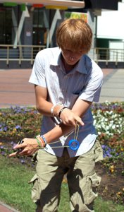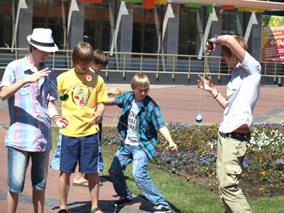 Серию акций «Ни дня без праздника» начали йоеры города. Первая прошла в пятницу на бульваре Энтузиастов по ходу скрутки — действа, во время которого крутят йо-йо. Молодые люди раздавали прохожим конфеты, печенье и листочки с манифестом радости. «Наша повседневная жизнь, как длинная серпантинная лента, тянется и тянется, - говорится в нем. - Если все время следовать этой ленте, очень скоро пропадают из головы сумасшедшие мысли и вас накрывает Никакое Настроение. Но! Мы ведь сами себе хозяева, правда? :) Сегодня и каждый месяц мы будем устраивать небольшие праздники. Вы можете праздновать их и не праздновать. Если захотите праздника, приходите к нам».