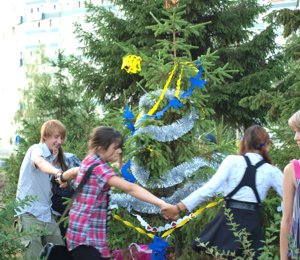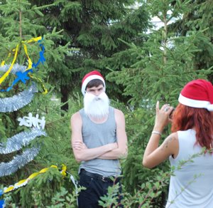 Полуновогодие отмечалось вечером 30 июня неподалеку от мэрии. На посиделки за чаем собралась большая группа молодых людей. Развлекались примеркой белой бороды, запуском воздушного змея и хороводами вокруг украшенной елки. Вместо шампанского пили чай.