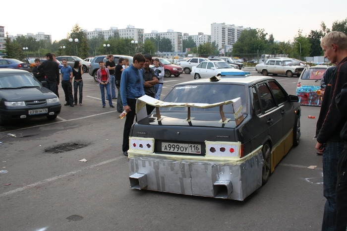 В субботу на площадке перед "Бомбеем" и в самом клубе был проведен нестандартный турнир, состоявший из трех дисциплин: боулинга, автозвука и тюнинга. Остановимся на двух последних видах. Соревнования по автозвуку и тюнингу проходили в 2 этапа. Каждая команда выставляла по 3 машины. Арбитры замеряли звуковое давление в салоне авто, а результаты машин плюсовались.