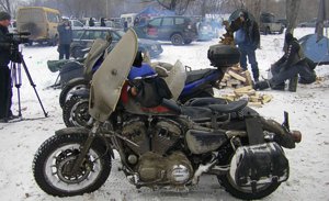 С погодой участникам повезло. При температуре -5 градусов ночевка в палатке переносилась легко, а концентрированное общение не только добавляло тепла, но и новых знакомств, полезной информации. Одним из главных событий слета стала традиционная битва "Унимото" с призовым фондом 100 000 рублей. Для горожан, не посвященных в тонкости мотоциклетной жизни, мы расскажем об этой замечательной дисциплине. "Унимото" - это детище Американского национального общество гонщиков Unimoto. Его участники двигаются бок о бок на странных агрегатах с одним колесом, обычно построенных в своём гараже и стоящих пару сотен долларов. Они "отжигают" 30 метров по грязи часто без управления или тормозов. Такой своеобразный "мотоспорт для простого человека" был изобретен около 20 лет назад байкером Вильямом Нассау (Сайдкар Вилли). "По сути, это гонки на мотоциклах со свалки, – говорит Вилли. – Люди копаются на свалках и в своих гаражах, а потом используют старые детали и свою изобретательность при постройке чего-то, что сможет проехать 100 футов (30 метров) на одном колесе и при этом не убьёт ездока".