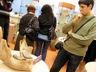 Например, нижняя челюсть мамонтенка, самый ценный объект выставки, найдена в окрестностях Тарловки. |