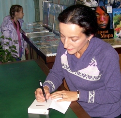 - Вы сейчас работаете над новой книгой. Это продолжение «Источника Счастья»? - Она будет последней? - Вы сделали открытие – в Ленина не стреляли, а единственной жертвой мнимого покушения стала полуслепая Каплан. - От коммунистов, наверное, Вам досталось. - А со стороны Анастасии Волочковой были какие-то действия, после того как вы изобразили ее под именем Светик – глупой, бездарной балерины в «Источнике счастья»? - А я думала, что после исполнения роли в фильме вы включили ее в новый роман. - В героях всегда присутствует автор. Если, позволите, я выскажу свои догадки относительно Вас. Чаю предпочитаете кофе. - Курите. - Любите джаз. - Всячески избегаете конфликтов. - С брезгливостью относитесь к изменам. - Что помогает создавать образы отрицательных персонажей, убийц, преступников? - До вас здесь выступал Виктор Ерофеев, обозначивший пятерку лучших писателей страны: он сам, Акунин, Сорокин, Толстая и Пелевин. А как по-вашему, через 100-200 лет кого будут читать?