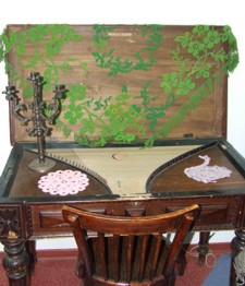 «У нас есть стол-гусли, - говорит главный хранитель фондов Наталья Микрюкова. - Ни в одном другом музее я такого не видела. Закрываешь крышку – стол, поднимаешь – гусли, на которых можно играть. Ценными мы считаем два дореволюционных пианино. На одном из них (MUHLBACH), переданном из казанской консерватории, играл Салих Сайдашев. Редкие для Челнов предметы – старинная мебель. С помощью самарского коллекционера мы приобрели два серванта середины 19 века, венские стулья. А в нашем городе мебель не сохранилась: люди просто выбрасывали ее или вывозили на дачу, перекрашивали. С помощью самарского коллекционера мы приобрели и напольные часы, граммофон. (Этот коллекционер – Сергей Александрович Скулкин – родом из Затона. Был такой поселок на другой стороне Камы, позже затопленный. Сергей Александрович тоже собирается открывать музей старины – в Тарловке. Он теперь живет то в Самаре, то в Тарловке).