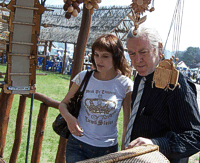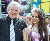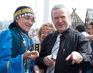Мы гуляли по Майдану вчетвером: два журналиста, переводчица Ирина Хасанова и мистер Подрик О'двайр. Подрик - ирландец, специалист по дереву, второй год занимается в Челнах оформлением пивного немецкого ресторана. Он именно Подрик, а не Патрик – так правильно звучит его имя. Мы пригласили Подрика на Сабантуй специально, ведь наши традиции европейцу должны казаться особенно экзотическими: дым, шум, борьба на полотенцах, бараны и петухи в виде призов. Дикие восточные пляски, жареное мясо. Язычество, словом. С утра на Майдан не стыдно вести любого гостя: народ нарядный, еще трезвый. Подрик пришел на Сабантуй во всем черном, при галстуке. На праздник надо одеться нарядно, сказали ему. И Подрик, несмотря на 26-градусную жару, гулял при параде. Переводчик Ирина Хасанова быстро пояснила происхождение праздника, мол, это ежегодный праздник плуга, на который собирается половина города. "Где можно увидеть национальные танцы? Много ли в Татарстане жителей? Кто у вас лорд-мэр?" - Подрик интересовался всем. Ирина еле успевала переводить, что "танцы увидим на Майдане, жителей миллиона 4, а "лорд-мэр" у нас Ильдар Халиков".