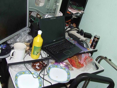 Это - рабочий стол заместителя генерального директора одной из известных в городе фирм. Венчает это изобилие рулон 100-литровых мешков для мусора.