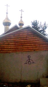 возможную связь с всеобщим нагнетающим маразмом может иметь некий символ, который появился на стене городского исполкома. Это перевернутая копия изображения древнего фалического символа. По объяснению интернет-сайтов, не связанных с магией, этот символ используется для избавления от объекта, вносящего дисгармонию в ауру. От себя добавим, что подобные рисунки, как и буквенные обозначения этого символа, мы встречали в разных частях города и на его окраине, преимущественно на заборах.