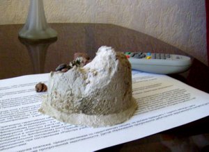 У нас во время ремонта на кухне после скола плитки такая же штучка выпала из стены и обнажилось ... ровное отверстие в подъезд. Думаю, мы не одни с такими сурпризами в стенах живем.
