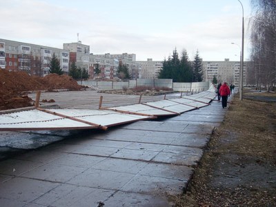Однако строители этого объекта уверяют, что никто не пострадал, а виноватых нет: «Это просто природный катаклизм, - заявил нам один из руководителей Финансово-строительной компании (ФСК) Геннадий Мальков. - Поднялся такой сильный ветер, что даже сварку отрезало. Одновременно упала проходившая рядом девушка и ушибла ногу. Но забор ни при чем. Мы с ней поговорили, она претензий к нам не имеет». |