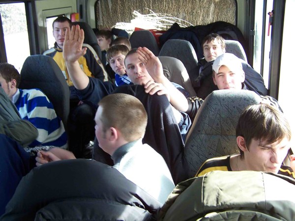 Вывозили нас из города в сопровождении милицейского кортежа. Расстроенные поражением местные жители, увидев нашу автоколонну, реагировали по-разному: кто-то показывал неприличные жесты и брался за снежки, а кто-то аплодировал. Добравшись до ближайшего придорожного кафе, камазовские фанаты превратили его в спортбар, где не только отметили победу любимой команды, но и посмотрели, как сборная России обыгрывает Азербайджан.