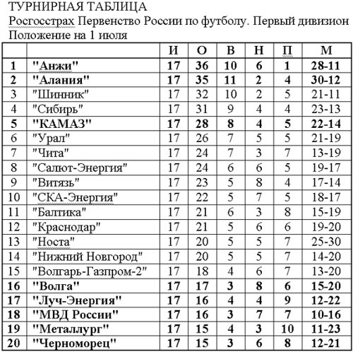 Зачем нам таблица команды на 1 июля? Сентябрь на дворе. Редакция - Вот Вы жжете!!!!