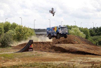 Трасса велотриала2010-06-23 00:02:05 9-20 июня в Челнах состоялся 6-й этап Кубка России по велотриалу. Мотоциклист перепрыгнул летящий КАМАЗ2010-06-15 17:14:52