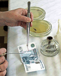 Куча денег - явление, прекрасное больше в воображении, чем в реальности. Большая масса купюр очень плохо пахнет. Еще бы: чьи-то руки, туалеты, магазины, грязные карманы - трудно придумать более антисанитарный предмет. Насколько именно грязны купюры, в Набережных Челнах не смог ответить никто. Мы провели собственное исследование. Далее...