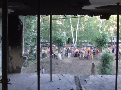 Любопытные сограждане вытоптали два газона в двух дворах - народу было, как на Сабантуе. Шли семьями, беременные, с детьми и колясками, с фотоаппаратами и камерами, с пивом и попкорном...