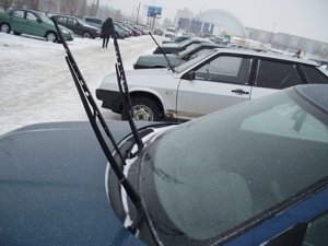 * Прежде чем оставить машину на стоянке, остудите салон, распахнув все двери, дабы падающий на теплое лобовое стекло снег не таял и вода не стекала к дворникам, которые потом намертво примораживаются. * Выстудив салон, желательно еще протереть стекло и резинки щеток, убрать из-под них всю влагу. * Снег на лобовом стекле иногда подтаивает из-за потепления, и щетки дворников все равно примерзают. Кто-то их грубо отдирает скребком, кто-то, после запуска двигателя, ждет когда стекло нагреется, и они сами оттают. А некоторые форсируют это процесс размораживателем из баллончика. Зная все это, предприимчивые люди уже продают специальные упоры на дворники, которые их только слегка приподнимают, создавая небольшой зазор. Но стоит ли тратить на них пять сотен рублей, когда роль этих упоров вполне могут выполнить спичечные коробки, которые подкладываются под щеткодержатели. |