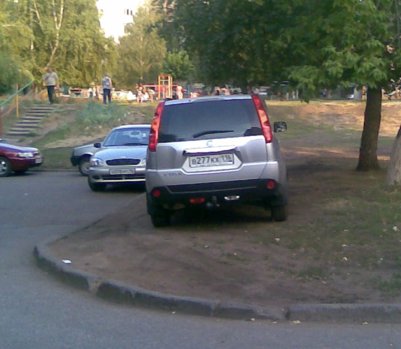 на след день вернулся обратно)), весь в тонировке как был, на пешеходном тротуаре и газоне 4мя колесами и дело не в том, что места нет, места предостаточно в том районе для парковки и обзорность хорошая с любого дома.