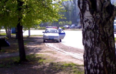 У остановки «Форт-Диалог» милицейская машина неаккуратно припарковалась и заехала на бордюр, что является, пусть не грубым, но нарушением правил. Что и незамедлил зафиксировать бдительный "инспектор без погон". |