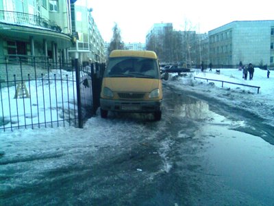 какие претензии к Газели он стоит на проезжей части, а для особо одаренных тропинка рядом. Ну нежели вам ее мало ходите по сугробам. Газель стоит на дороге