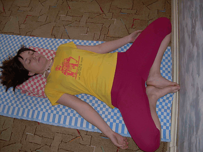 Завершающая "процедура" - Шавасана. Лягте на расстеленное одеяло, второе подложите под голову и шею как подушку и расслабь |