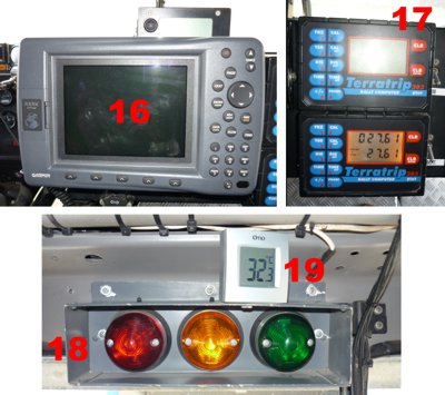 21 - кронштейн для прибора спутниковой связи, которая используется организаторами для безопасности – в этом приборе есть датчики переворота, резкой остановки, то есть, удара. В таких случаях сигнал подается на спутник и показывает координаты автомобиля.