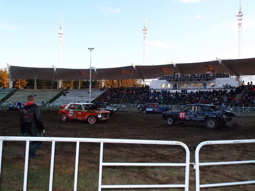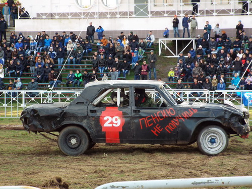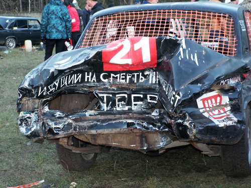 - Приобретаете старый автомобиль, снимаете с него все, что может разбиться (стекла, фары, зеркала), переносите радиатор и бензобак в салон. Обвариваете водительское место толстенными трубами, чтобы создать «капсулу жизни», - тем временем рассказывал зрителям ведущий автобитвы. Других каркасов жесткости делать нельзя. Заметим - практически все участники выступали на автомобилях "Волга", только один - на "Вольво".