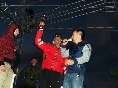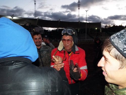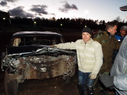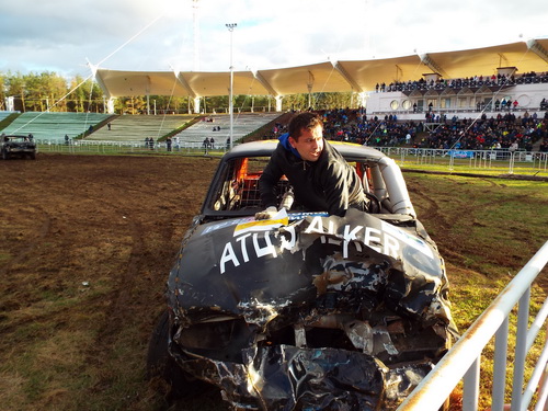 Однако сохранивший большую подвижность Пенсия раз за разом старался нанести удар именно в то самое колесо. Но Сакал вынужден был выйти из борьбы, потому что сломалась коробка передач - никак не включалась задняя скорость, и он не смог выехать из угла "ринга". Победителем стал Пенсия. Как выяснилось, это прозвище неслучайно - под ним скрывался 56-летний казанец Альберт Алексеев - старейший из участников. Он получил от организаторов и спонсоров сертификат на 150 литров бензина, присадки и масла, а также денежный приз, сумму которого зрителям не озвучили.