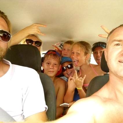 Известный бизнесмен из города Набережные Челны Айрат Тагиров, находящийся на отдыхе в Греции, разместил в своем микроблоге этот фотоснимок с подписью: "Экономные русские! 9 человек в "Опель Корса"!