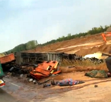 Сегодня на 867-м километре трассы М-7 по направлению в сторону Набережных Челнов столкнулись три грузовика, которые от удара вывалились в кювет и загорелись. Сила удара была такова, что кабину "КАМАЗа", работающего на реконструкции автодороги, буквально расплющило. Судя по двум телам, лежащим на дороге и накрытым одеялами, есть жертвы ДТП. Однако официальной информации о пострадавших пока нет.