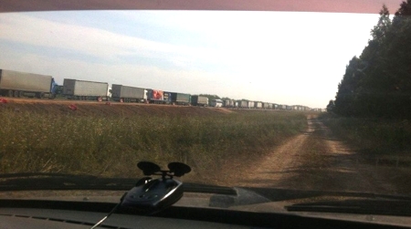 В результате автоаварии на трассе образовалась многокилометровая пробка, которую водители объезжали по проселочной дороге:
