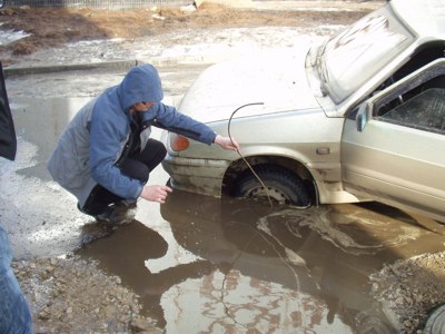 Позади зима с ее снежными заносами, гололедами, Днем жестянщика... Но автомобилистам расслабляться не стоит. Весной, с началом активного таяния снега, практически каждый день становится "днем подводника", когда водителям приходится лавировать на дороге между глобоководными ямами-"минами". К сожалению, это нормальное явление для дорог в Набережных Челнах - старый асфальт, который был уложен в ямы в прошлом году, вымывается - это физика природных явлений - вешние воды уносят все, что плохо закреплено.