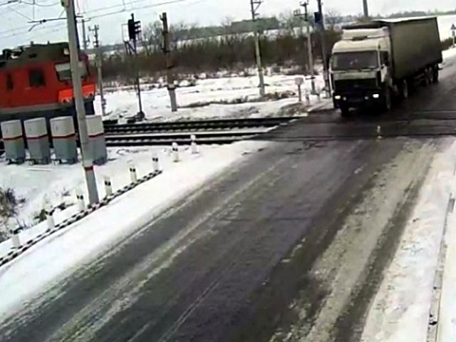 ДТП зафиксировала камера наблюдения. Интернет-пользователи, посмотревшие видео, возмущены тем, что переезд не оборудован шлагбаумом, а дорога не посыпана песком - вероятно, что тягач выехал на железнодорожные пути из-за гололеда.