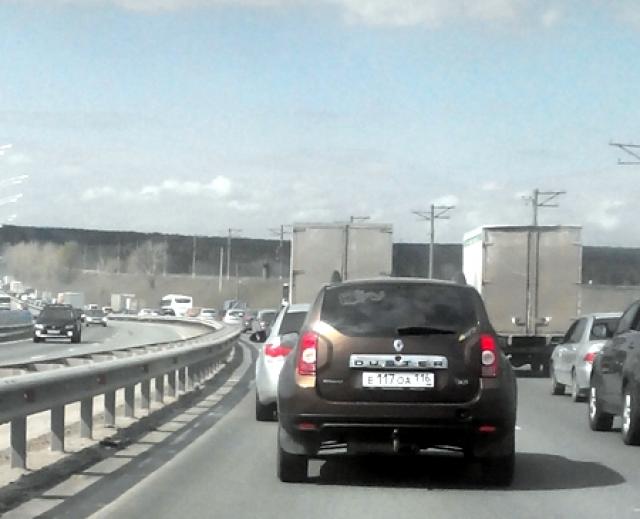 Из-за ремонта автомагистрали М-7 вблизи Набережных Челнов в сторону Казани проезд автомобилей на участке от плотины Нижнекамской ГЭС до поста ГИБДД был затруднен - образовывались многокилометровы