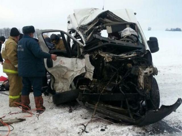 Вчера на 1505-м километре автотрассы М-5 в Башкирии водитель пассажирского микроавтобуса "Пежо", перевозивший 17 человек по по маршруту "Уфа - Малояз", выехал на встречную полосу и врезался в большегруз одной из транспортных компаний Татарстана. В результате лобового столкновения двое человек в маршрутке - мужчина и женщина - скончались на месте ДТП. Еще шестерым пассажирам понадобилась медицинская помощь.