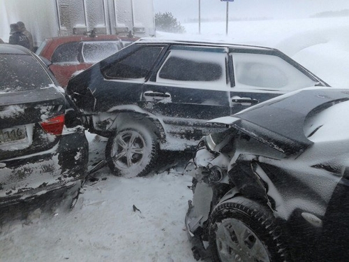 Из-за плохой погоды на автотрассе М-7 столкнулись 12 автомобилей