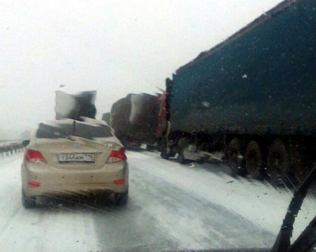 Из-за снежных завалов и многочисленных ДТП на автотрассе М-7 образовались многокилометровые пробки