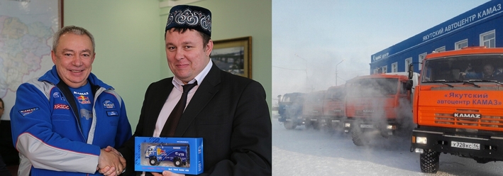 В путь - к высокогорному озеру Лабынкыр - команду проводил заместитель министра транспорта и дорожного хозяйства республики Саха (Якутия) Сергей Владимиров, сообщает пресс-лужба ОАО "КАМАЗ". Ему и сотрудникам местной администрации были подарены тюбетейки и модельки легендарных гоночных "КАМАЗов". Владимиров удивился: "А как вы проедете, там же нет дороги!" - "Теперь будет! Для того на "КАМАЗах" и едем», - ответил руководитель Магаданского автоцентра «КАМАЗ» Али Кариев.