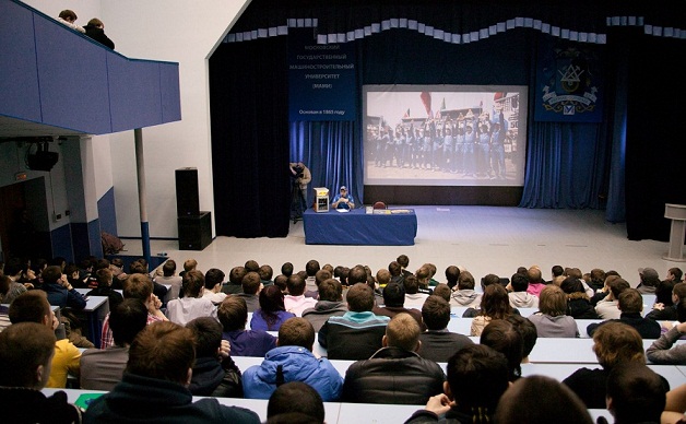 13 марта в Московском государственном машиностроительном университете пилот команды «КАМАЗ-Мастер» Эдуард Николаев примерил на себя роль лектора. Около 2 часов гонщик из города Набережные Челны рассказывал студентам-«машиностоителям» о технических тонкостях и откровенно отвечал на каверзные вопросы.