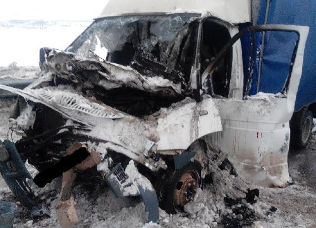 На автотрассе "Елабуга - Ижевск" загорелась "Газель" после столкновения с "КАМАЗом"