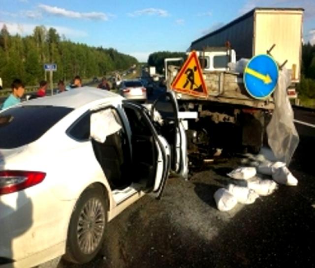 На автотрассе М-7 рядом с Челнами "Форд Мондео" протаранил автомобиль дорожников