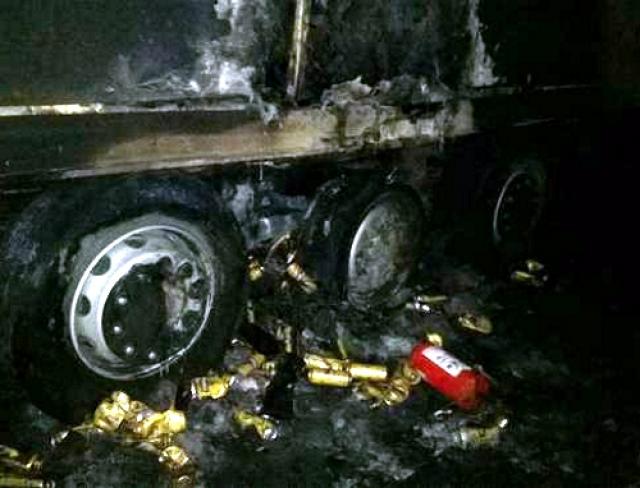 На автотрассе М-7 загорелся грузовик, перевозивший баночное пиво