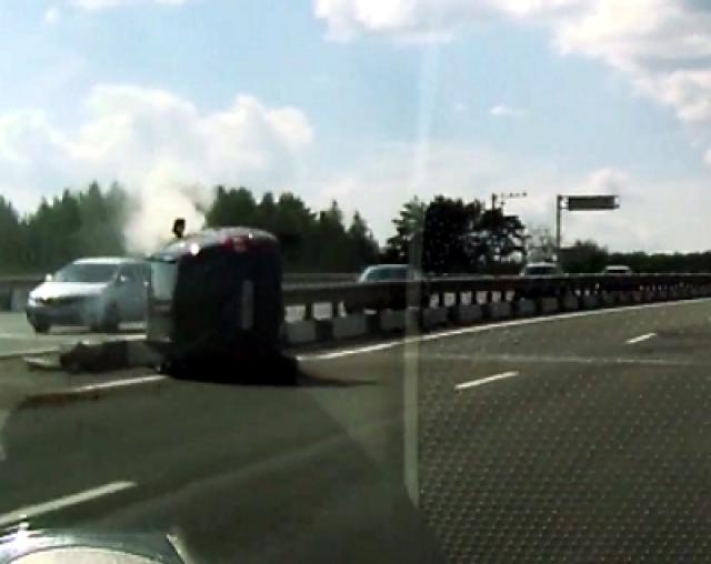 Видеорегистратор, установленный в свадебном автомобиле, зафиксировал ДТП на автотрассе М-7, которое случилось 25-го июня.