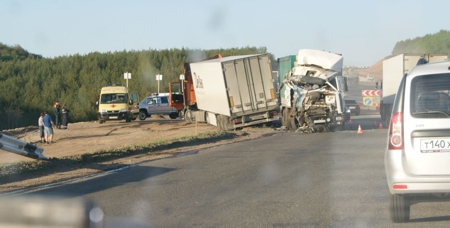 На автотрассе М-7 в районе проведения дорожных работ по неизвестной пока причине столкнулись грузовики «МАЗ» и «Сканиа», сообщает "Новая Кама". Видимо, кто-то из водителей фур своевременно не разобрался в порядке смене полос движения, организованного на этом участке дороги в связи с ремонтом. Сильно пострадали кабины грузовиков. О пострадавших людях не сообщается. В результате ДТП на трассе образовалась 4-километровая пробка.