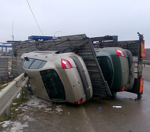 Вчера днем на федеральной трассе М-7 недалеко от села Шали водитель автовоза, перевозившего новенькие автомобили "Рено", не справился с управлением на скользской трассе и перевернулся. В какой автосалон транспортировались иномарки и нанесенный в результате ДТП ущерб пока неизвестны.